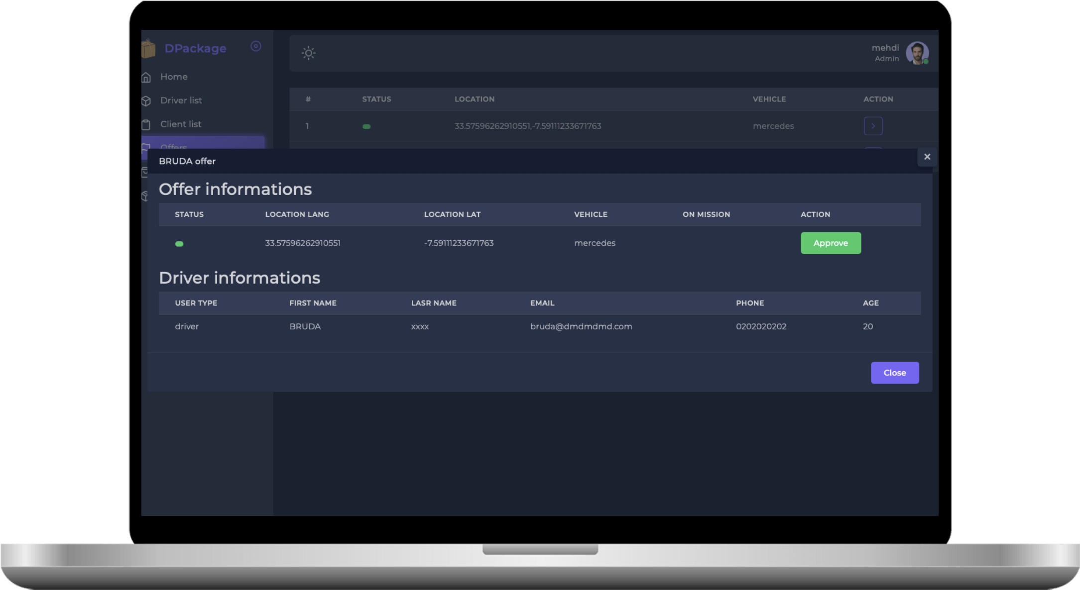 web and mobile application for transporting packages.