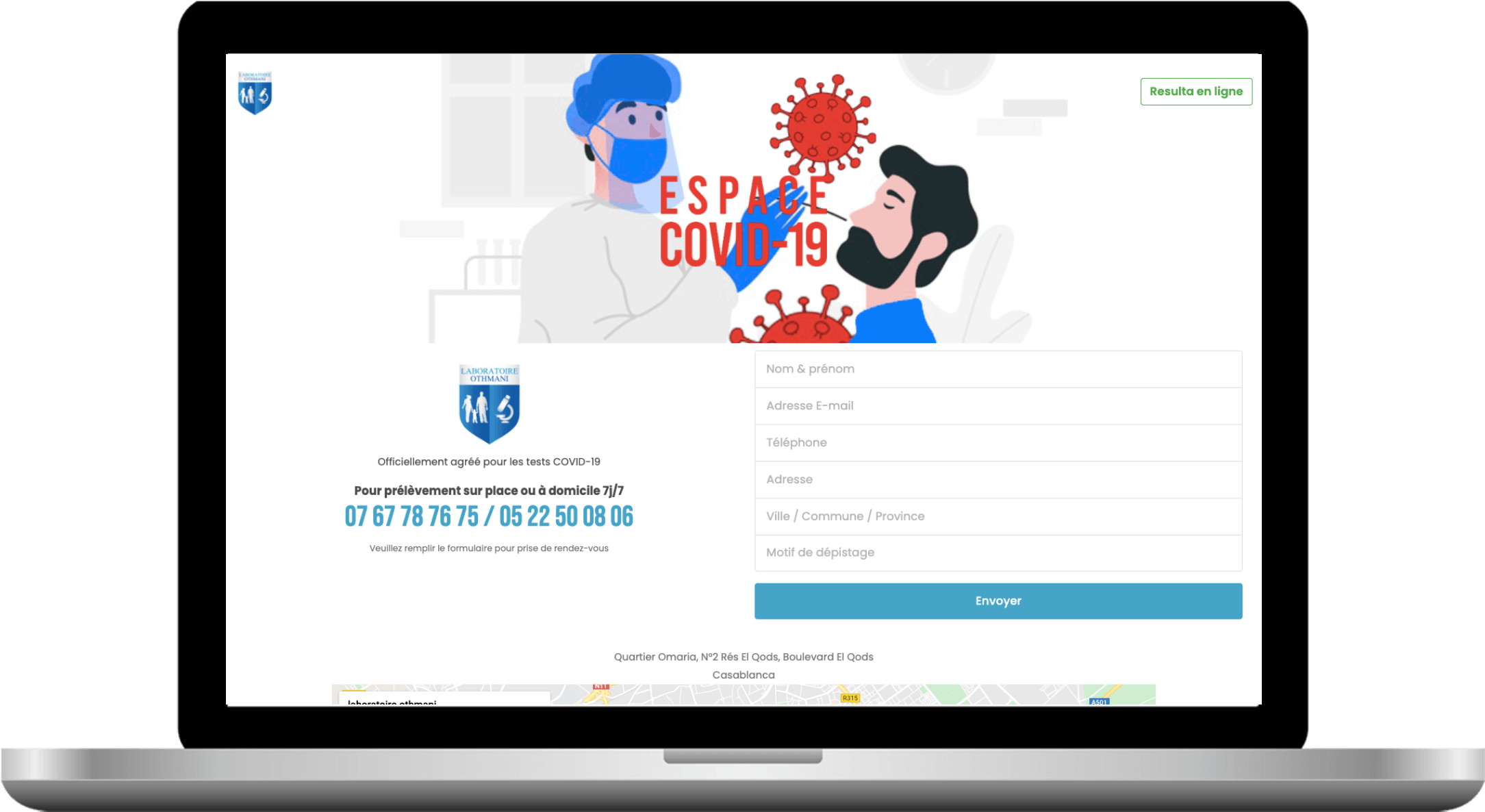 A portal for patients to get in contact with there doctors, view their covid test result, take appointment...